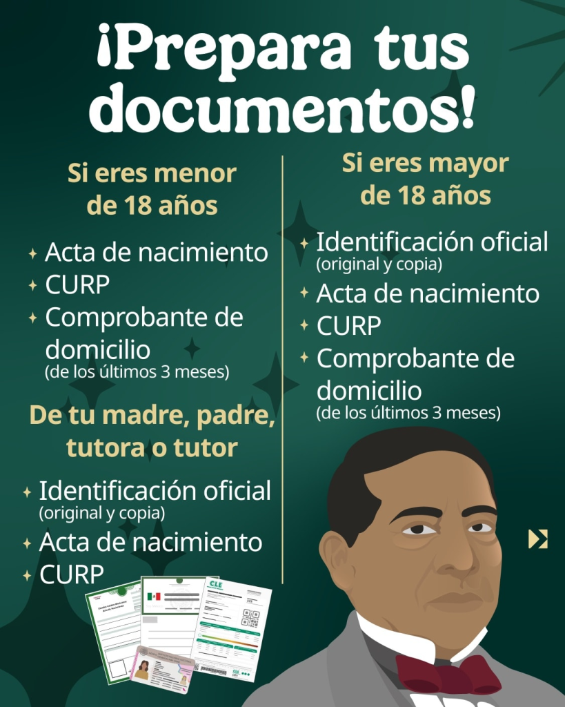 Para agilizar la entrega de tu tarjeta, las autoridades recomiendan preparar los documentos con anticipación. La lista varía según el nivel educativo del beneficiario: